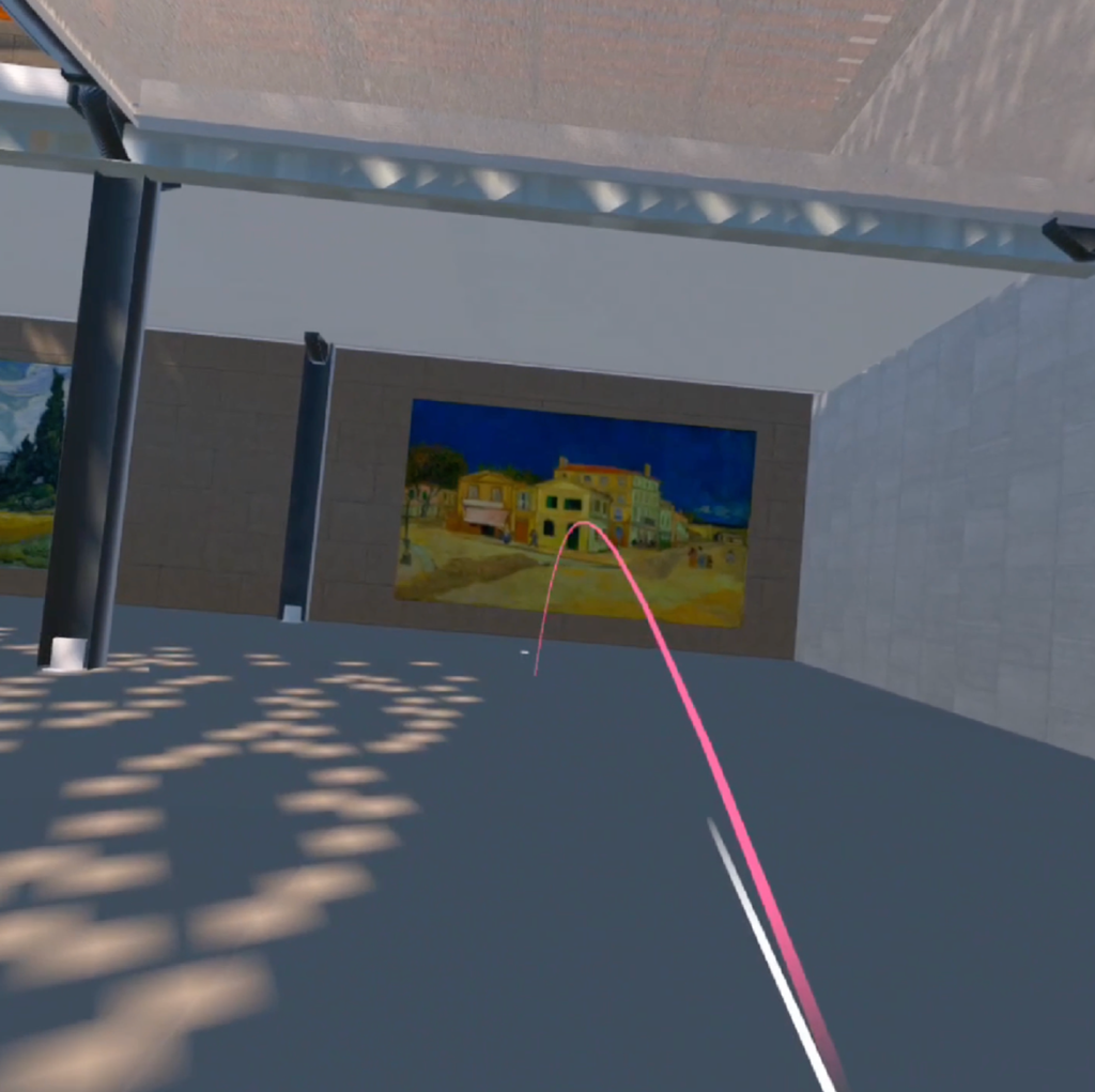 The user uses Teleportation from one place to another as the gallery has teleportation points placed all around the gallery to get a better view of the paintings. The walking method can also be used here, but to make sure we give the user the most amount of ease and also, in VR, the user can fall or hit any object if we use a walking method that’s why I used the teleportation method instead of gradual walking.