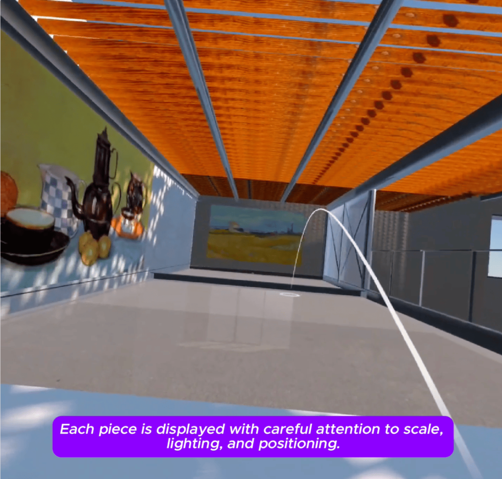 If anyone has a VR headset, they can explore the gallery as it removes the physical presence needs from anyone and gives them the freedom to learn and enjoy the environment.