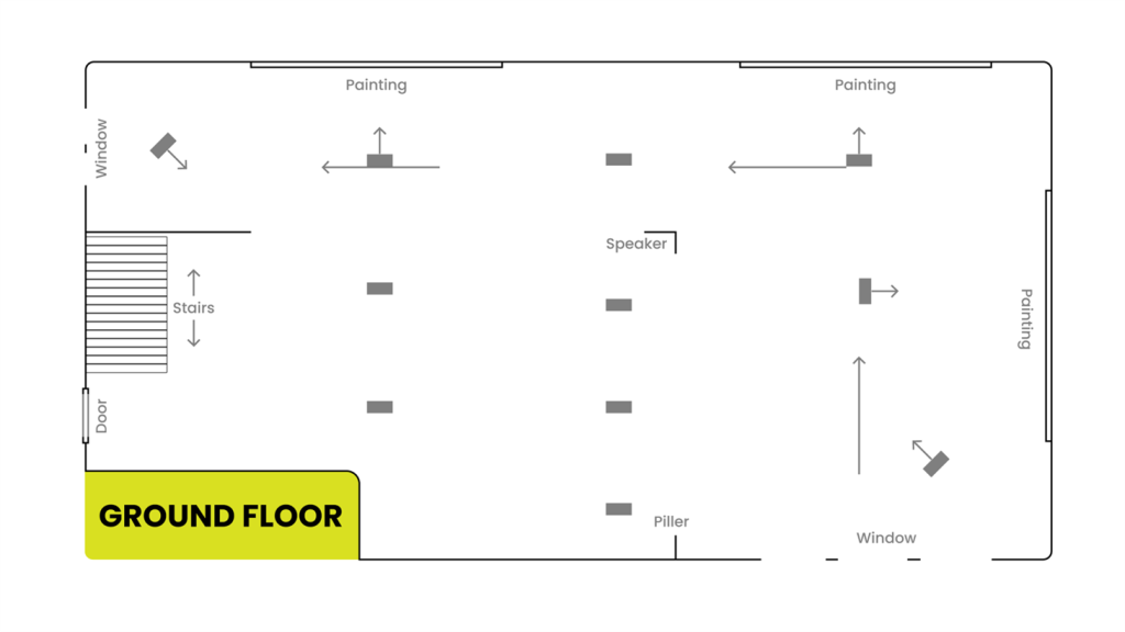 On the above floor, the wood ceiling has been placed with gaps so that anyone who follows the teleportation points and goes toward the first floor can have enough amount of lightning coming from windows and also from the above ceiling to give a natural touch on the above floor. This design mirrors the vibrant and nature-inspired themes of Van Gogh’s works.